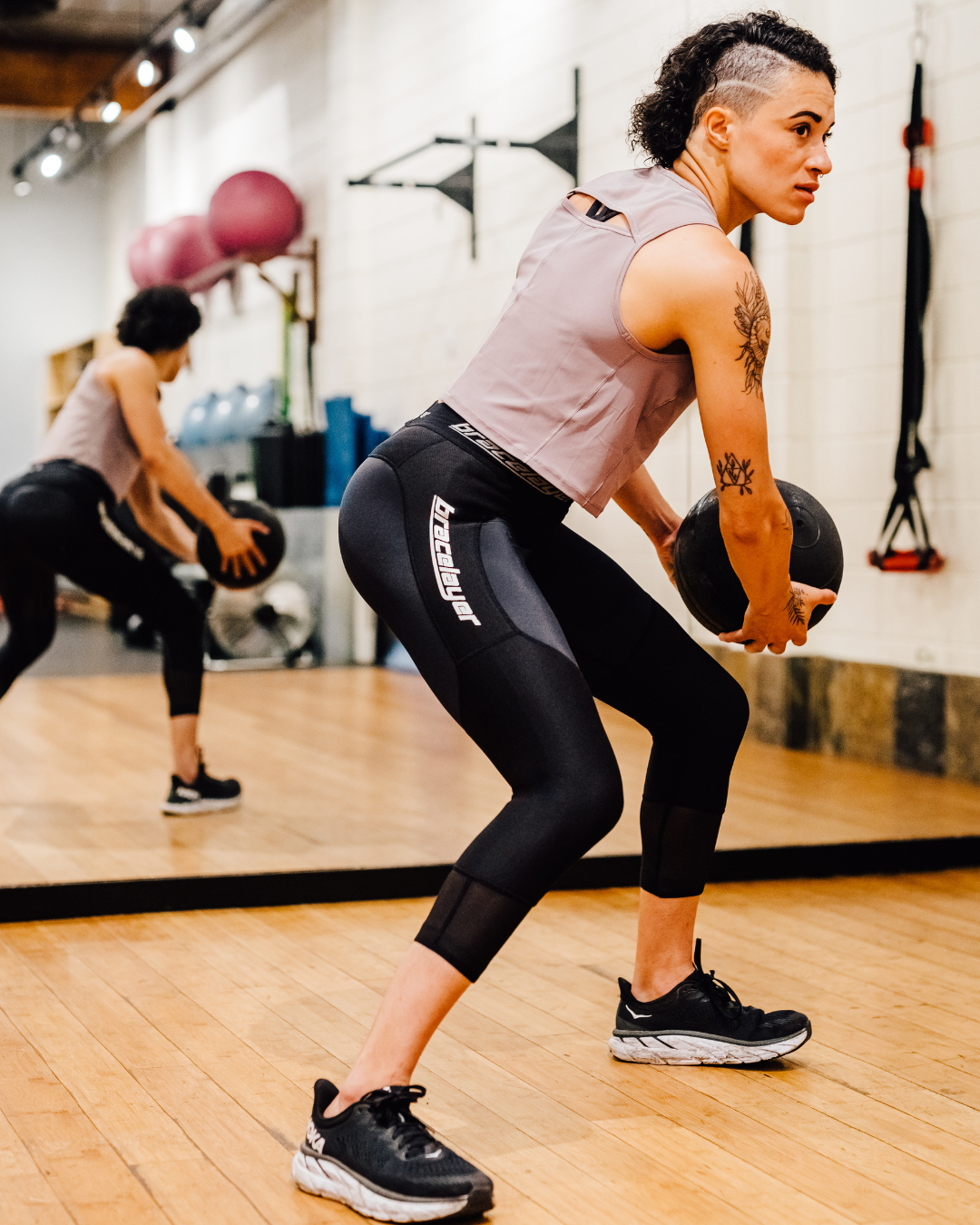 Bracelayer compression tights feature a unique Tri-Tech Support Layer. This built-in technology is made from a thin layer of medical-grade, perforated neoprene around the knees and hips.