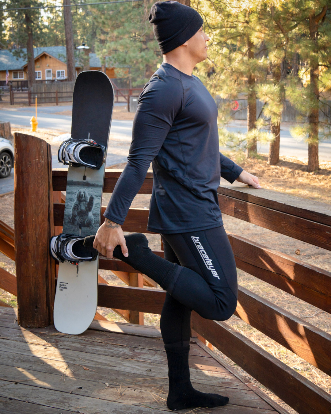 Bracelayer compression tights feature a unique Tri-Tech Support Layer. This built-in technology is made from a thin layer of medical-grade, perforated neoprene around the knees and hips.
